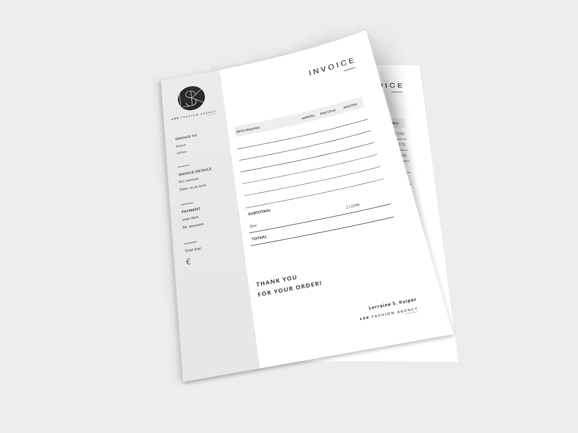LSK Agency is een agency voor fashion. Samen met eigenaar Lorraine Kuiper hebben wij een strak logo met huisstijl weten te creëren dat bij LSK Agency past. In het beeldmerk zijn de bedrijfsinitialen LSK verwerkt. Tevens wordt haar bedrijfsauto bedrukt met het logo en zal binnenkort de website www.lskagency.nl live gaan.